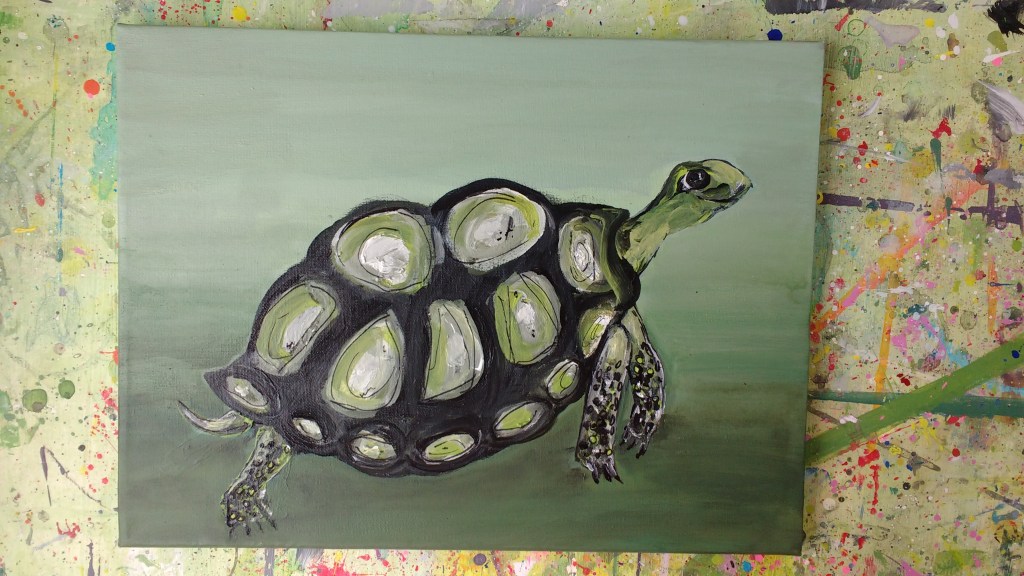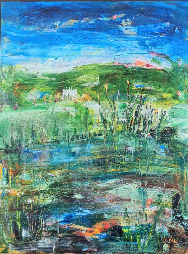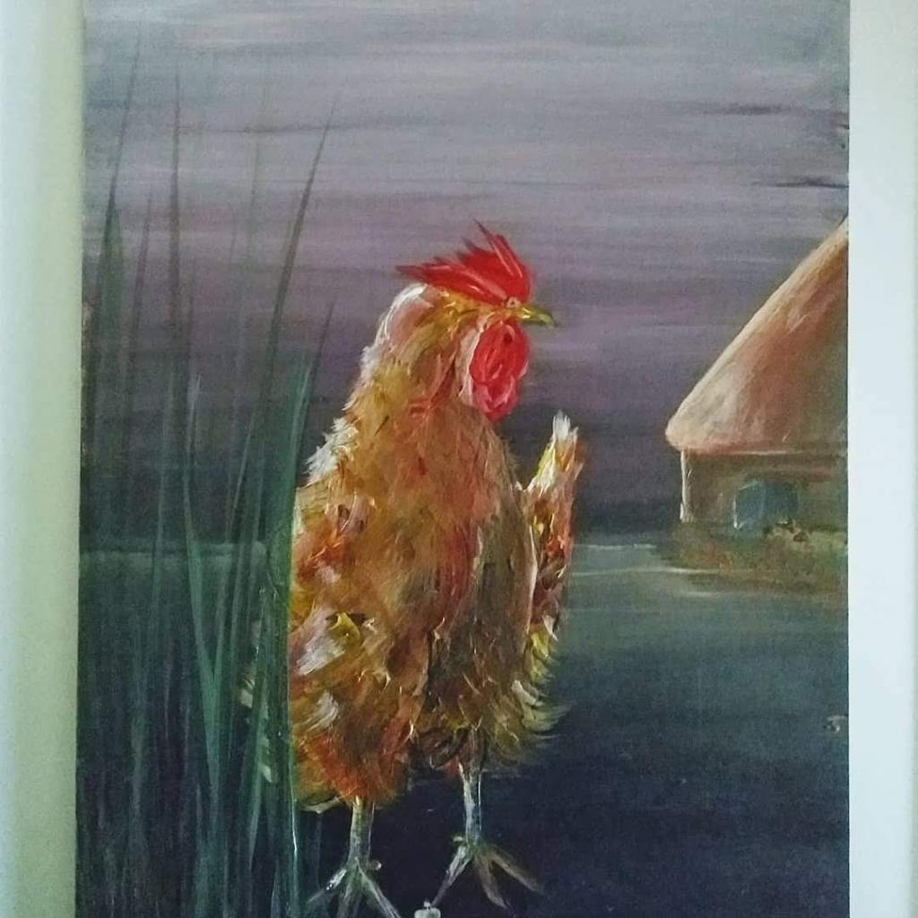 My name is Chrissie Thompson and I live and paint on a Herefordshire hillside, inspired by my garden, wonderful views, fresh air and Maureen the chicken. (A sad update here, Maureen sadly passed away in the summer of 2022)