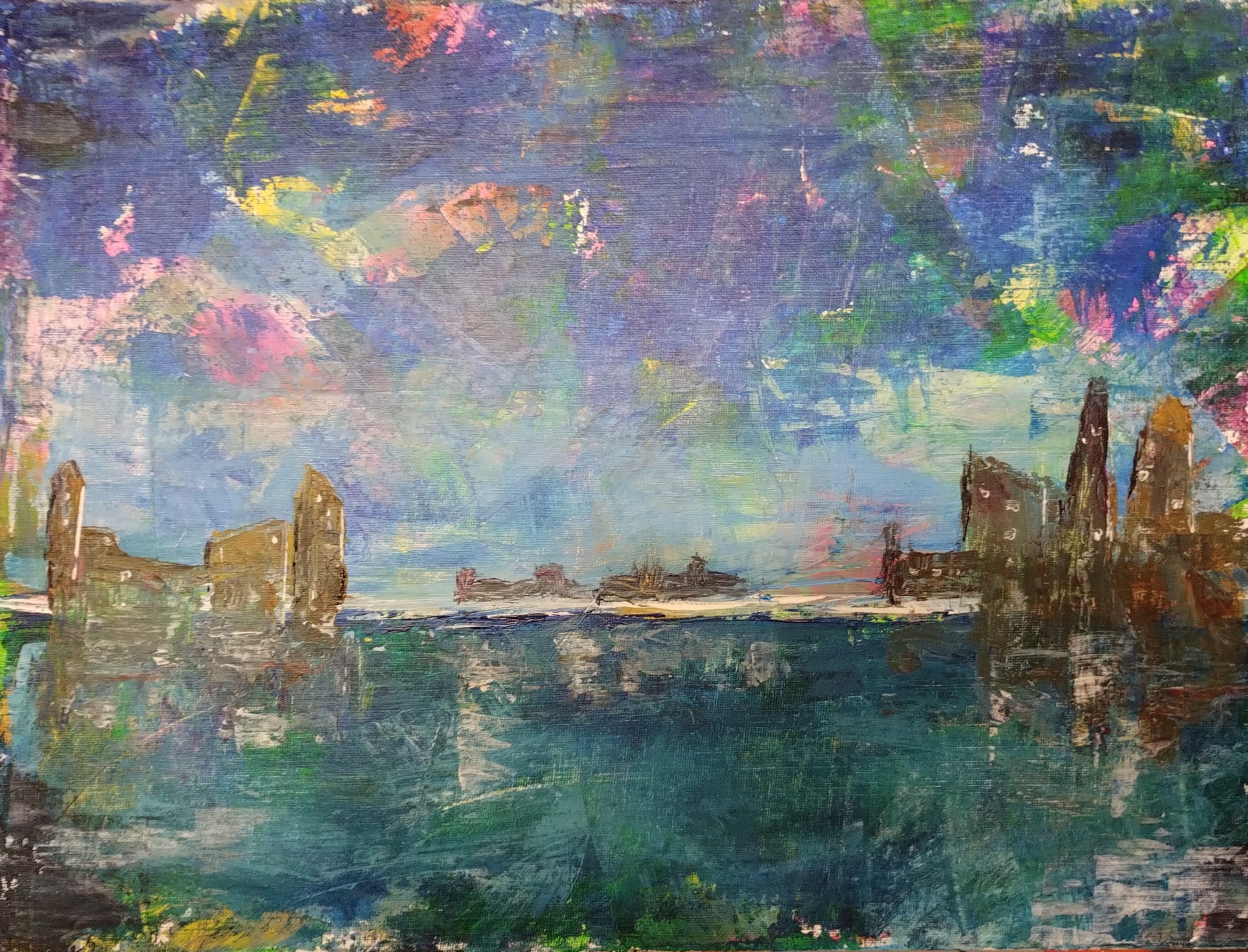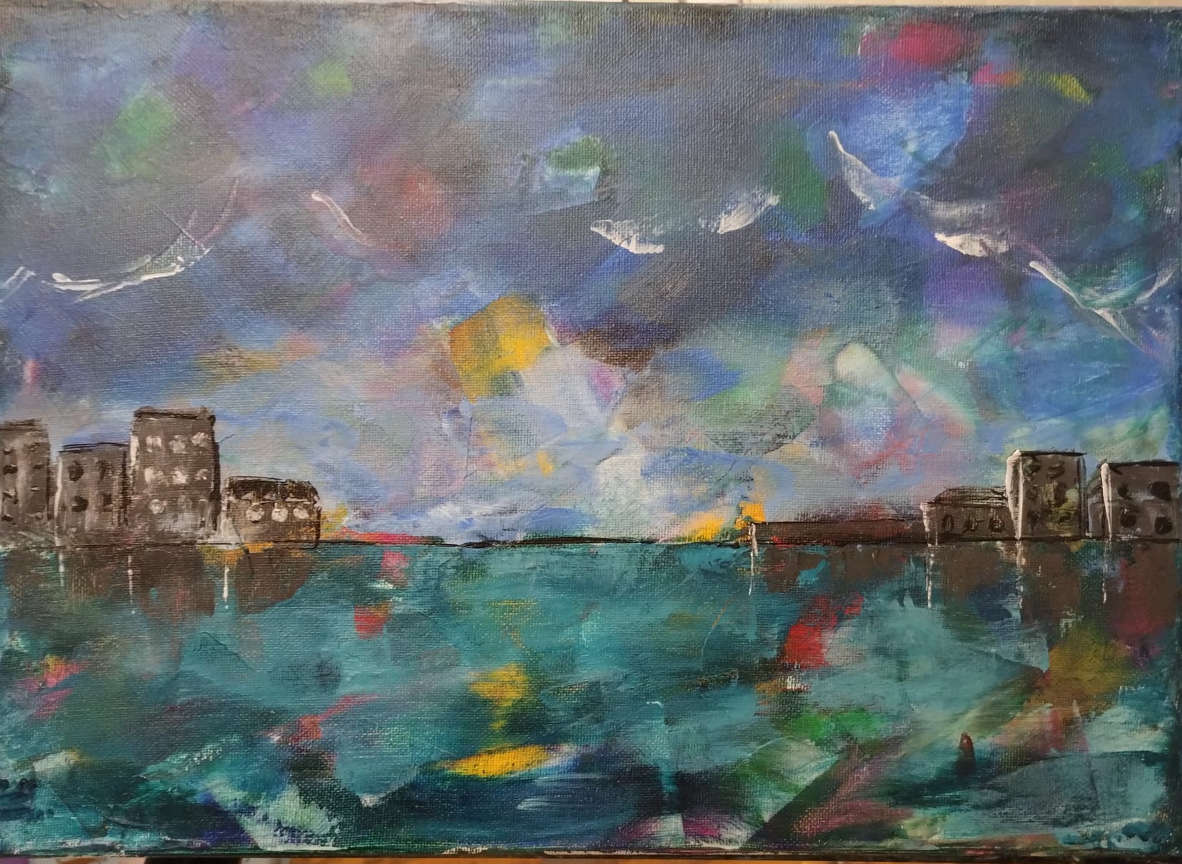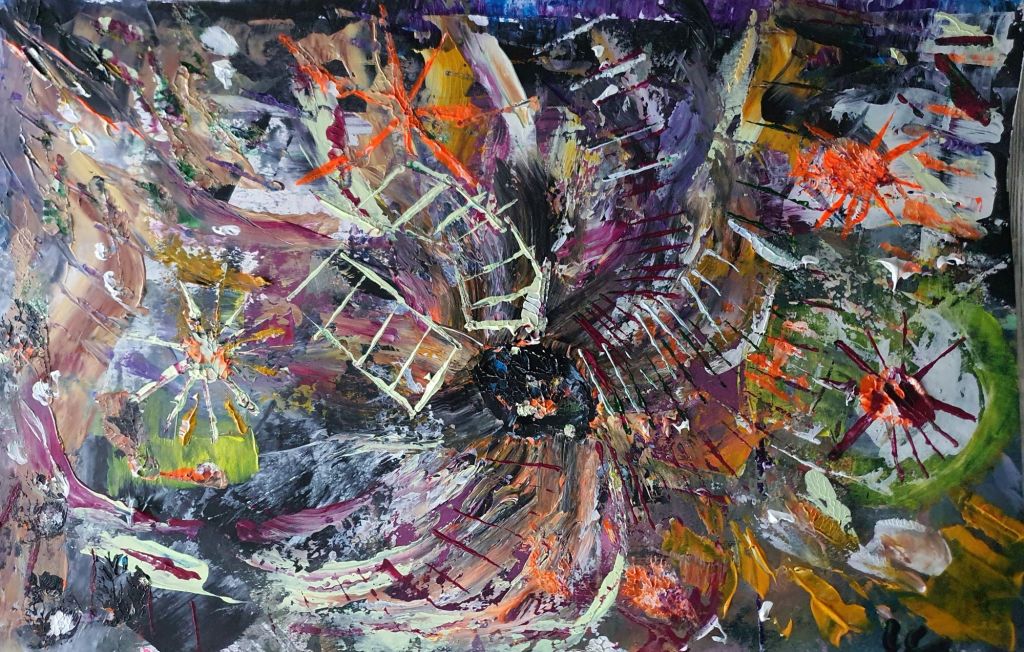 Brush and Bubbles’ Workshop with a complimentary two-course lunch and prosecco…………… For aspiring and inspired artists to have fun with acrylic paint, in my studio at the bottom of the garden in the Herefordshire hills. Beginners welcome, no drawing skills needed, …………. I will demonstrate my techniques for a vibrant and expressive piece of work. …………….This is a relaxed day where you can create up to three pieces of art.